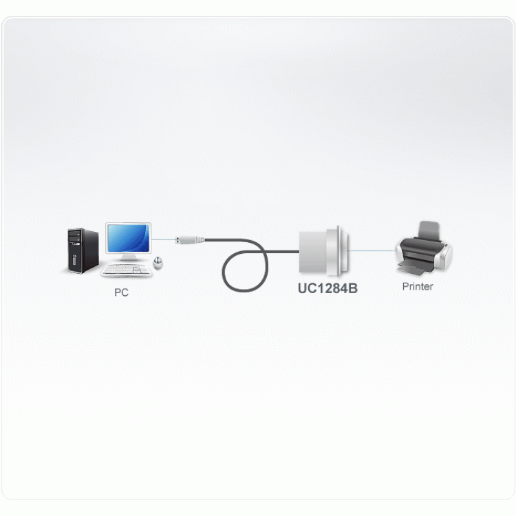 O UC1284B é um conversor USB para porta paralela. Converte o USB nos PCs, notebooks e dispositivos portáteis em porta paralela para conexão de impressoras.
